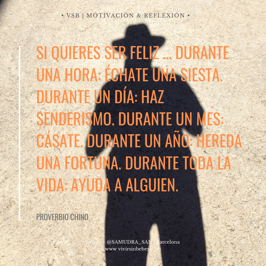 «Si quieres ser feliz durante un día, échate una siesta. Durante un día, haz senderismo. Durante un mes, cásate. Durante un año, hereda una fortuna pero si lo que quieres es ser feliz toda la vida, … ayuda a alguien»